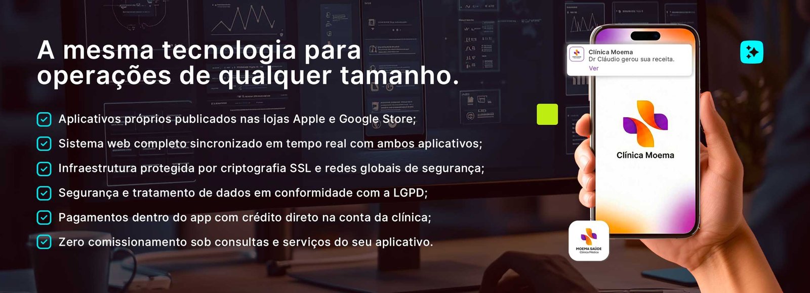 Seu paciente percebe quando existe estrutura. Um aplicativo próprio transmite organização, profissionalismo e cuidado com a experiência.